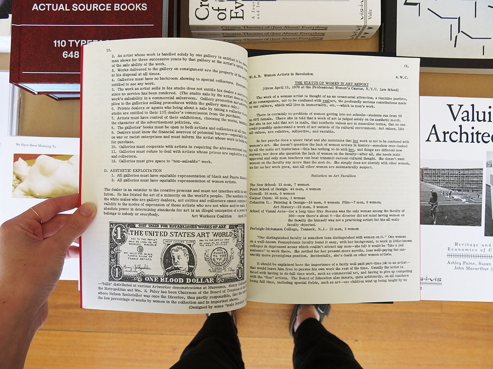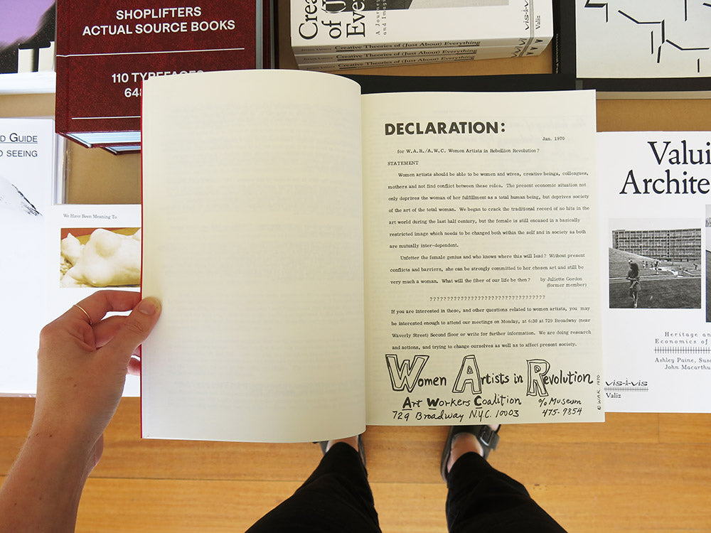 Women Artists in Revolution (W.A.R.) was founded as the women’s caucus of the Art Workers’ Coalition and was active from 1969 to 1971. This publication gathers manifestos, statements, and declarations by W.A.R. members; articles and reports about gendered and racialised discrimination in the arts; pro-abortion fliers and protest ephemera; and grant applications and reports detailing the founding of the Women’s Interart Center in spring 1970. Also included are documentation of key actions, including the 1970 Artists’ Strike against Racism, Sexism, Repression, and War; and correspondence with officials at the Whitney Museum of American Art, the Guggenheim Foundation, and the Museum of Modern Art calling for 50 percent gender equity in exhibition programming, increased grant and fellowship support for women, and structural representation at the management and curatorial level, among other demands.