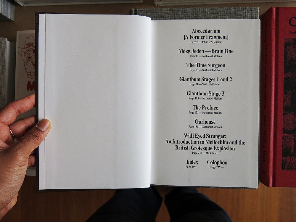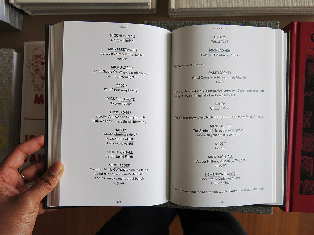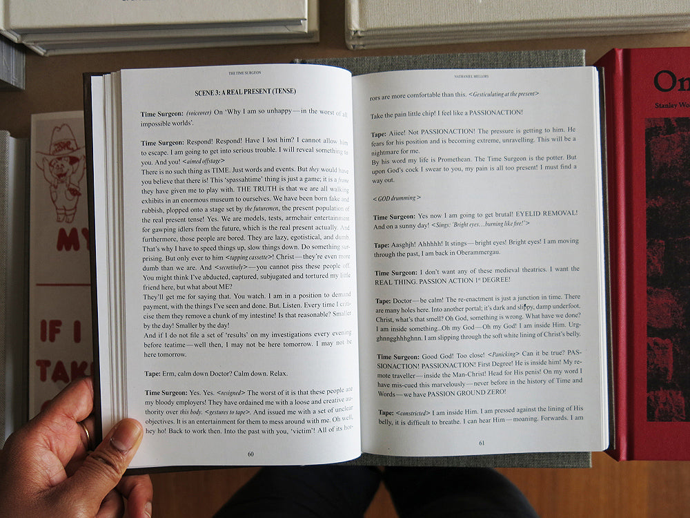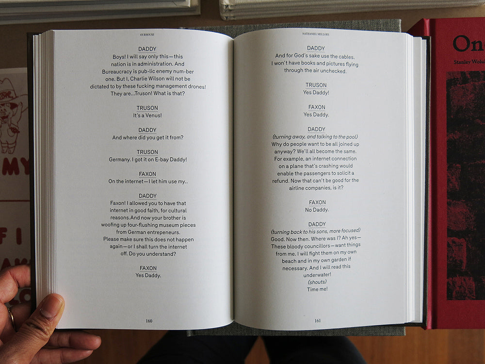 This is an experimental monograph that explores Nathaniel Mellors' linguistic manipulation, absurdist comedy and aspects of video, sculpture, performance and critical writing interwoven in his work. Featuring a selection of his original scripts from 2006 onward that have since been developed into video and installation works, including Ourhouse (2010) and Brain One—Mózg Jeden (2006). Contributions by artist and writer Mick Peter and art critic John C. Welchman.