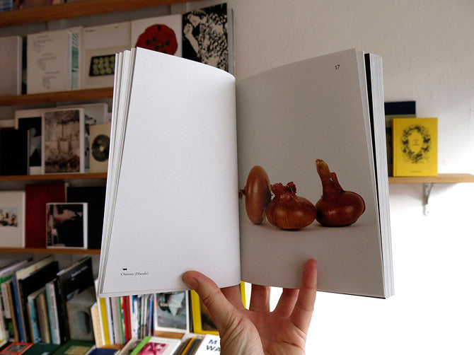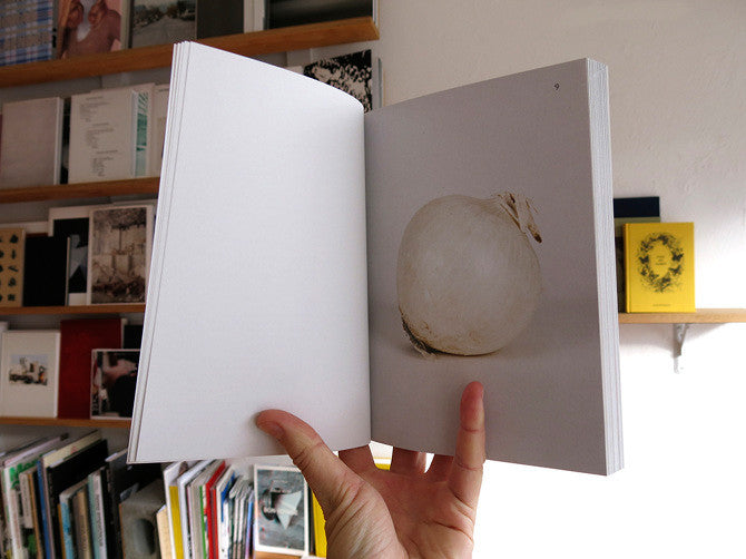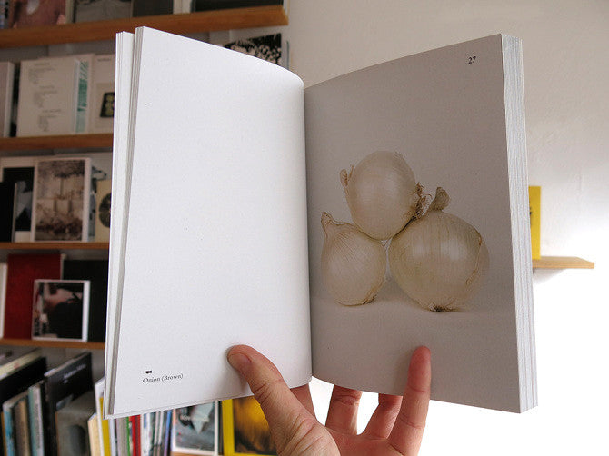 Tel Aviv-born, LA-based artist Elad Lassry's On Onions is essentially a study of form. Juxtaposing repeated images of onions (and occasional human eyeballs) dissected to various degrees, Lassry poses the question of just what it is that connects or separates these images aside from their referent. Humorously, the book also includes an essay by Angie Keefer about the effects of sliced onions on human tear ducts. Published by Primary Information (New York).