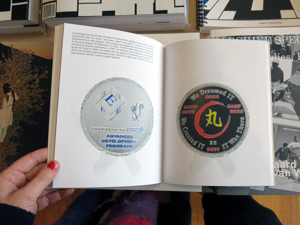 Guided by the idea that “something always remains”, Merlin, a former NASA archivist, has amassed a vast collection of flight wreckage, dossiers, and memorabilia – objects that are sometimes the only remnants of covert government operations. Merlin’s collection is primarily focused on military bases such as Area 51 and the Edwards Air Force Base, as well as the surrounding crash sites of experimental government aircraft. Here, Paglen has selected fifty-nine objects from Merlin’s collection that range from the sinister to the mundane to the humorous. His stark photographs of these symbol-laden challenge coins, patches, models, and other objects build on his long-standing interest in the culture of secrecy while providing a fragmentary peek into decades of elusive military missions. The book continues Paglen’s ongoing work with experimental geography, state secrecy, and military symbology in exhibitions and book form. Published by Primary Information (New York City).