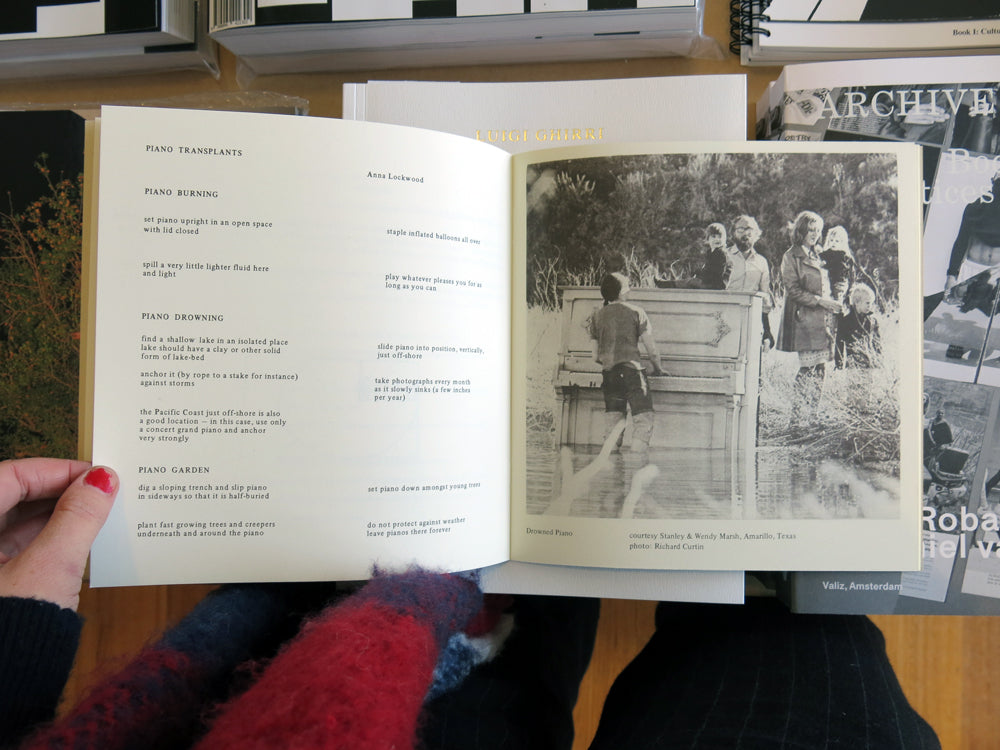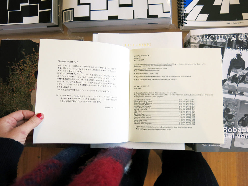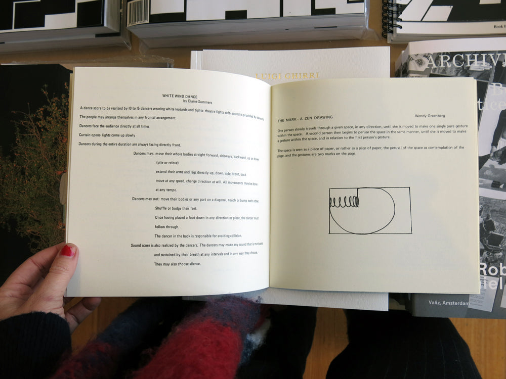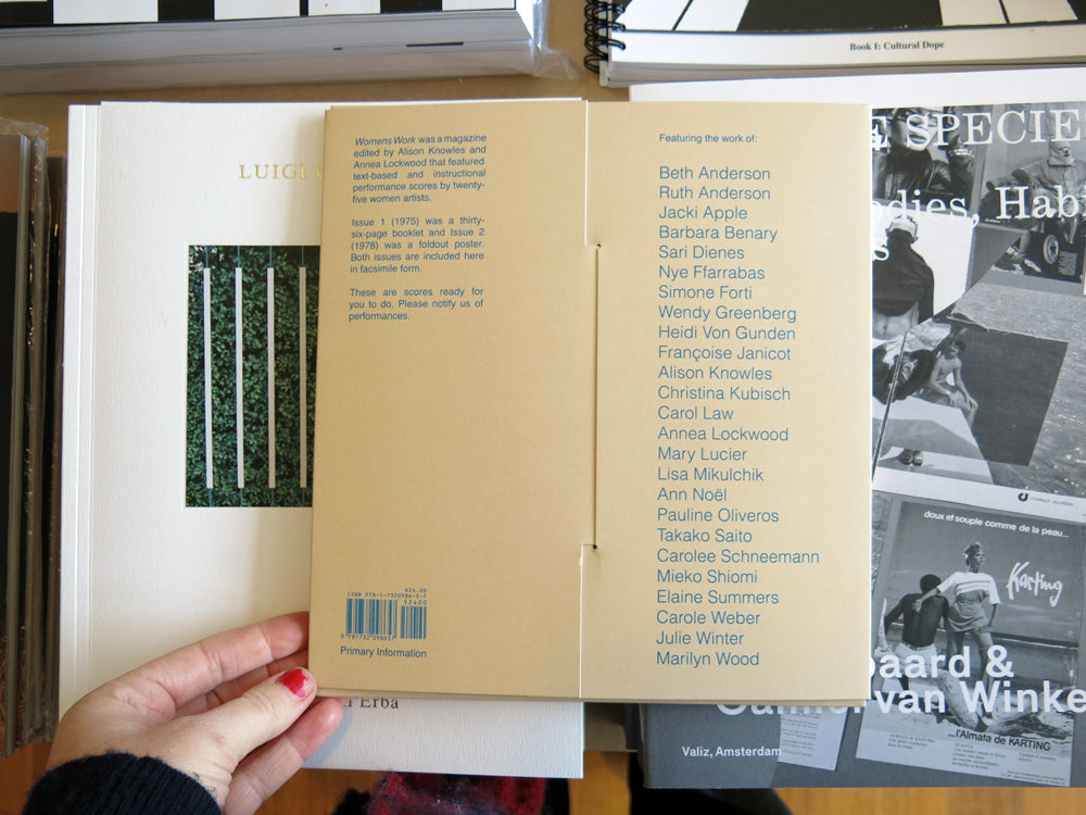 The work of Beth Anderson, Ruth Anderson, Jackie Apple, Barbara Benary, Sari Dienes, Nye Ffarrabas (Bici Forbes), Simone Forti, Wendy Greenberg, Heidi Von Gunden, Françoise Janicot, Alison Knowles, Christina Kubisch, Carol Law, Anne Lockwood (Anna Lockwood), Mary Lucier, Lisa Mikulchik, Ann Noël (Ann Williams), Pauline Oliveros, Takako Saito, Carolee Schneemann, Mieko Shiomi, Elaine Summers, Carole Weber, Julie Winter and Marilyn Wood are all featured. Published by Primary Information (New York City).