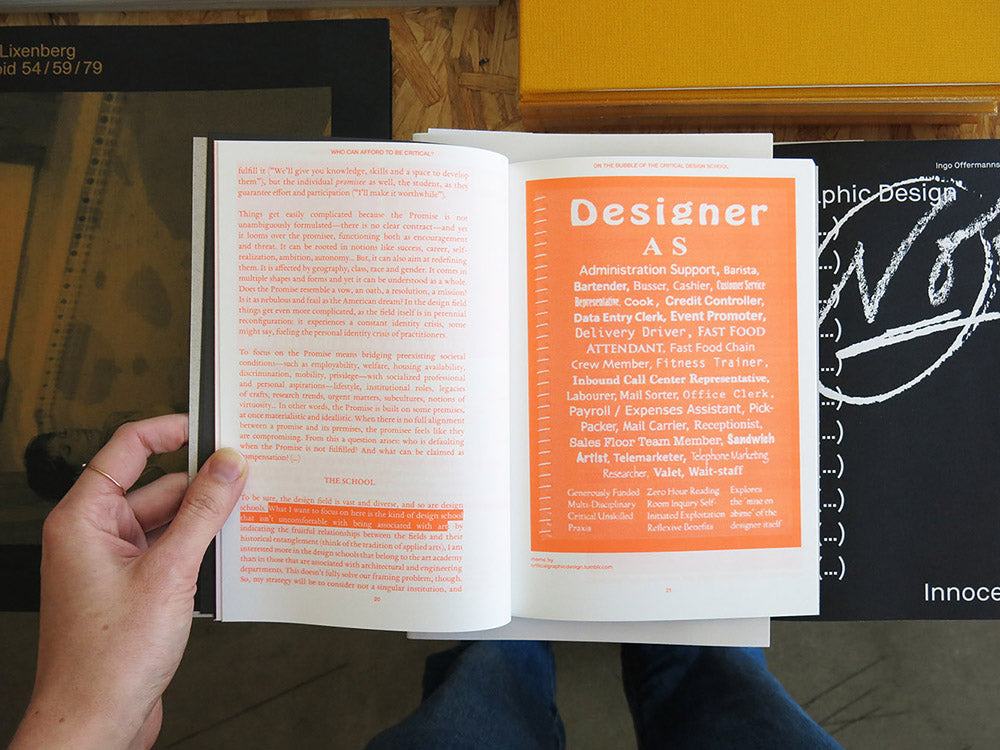 In a dynamic style holding multiple voices, Who Can Afford To Be Critical? discusses the limits that affordability, class and labour impose upon the educational promise of holding a ‘critical’ practice. Why do we tend to ignore the material and socioeconomic constraints that bind us as designers, claiming instead that we can be powerful agents of change? In fact, where does our agency lie?