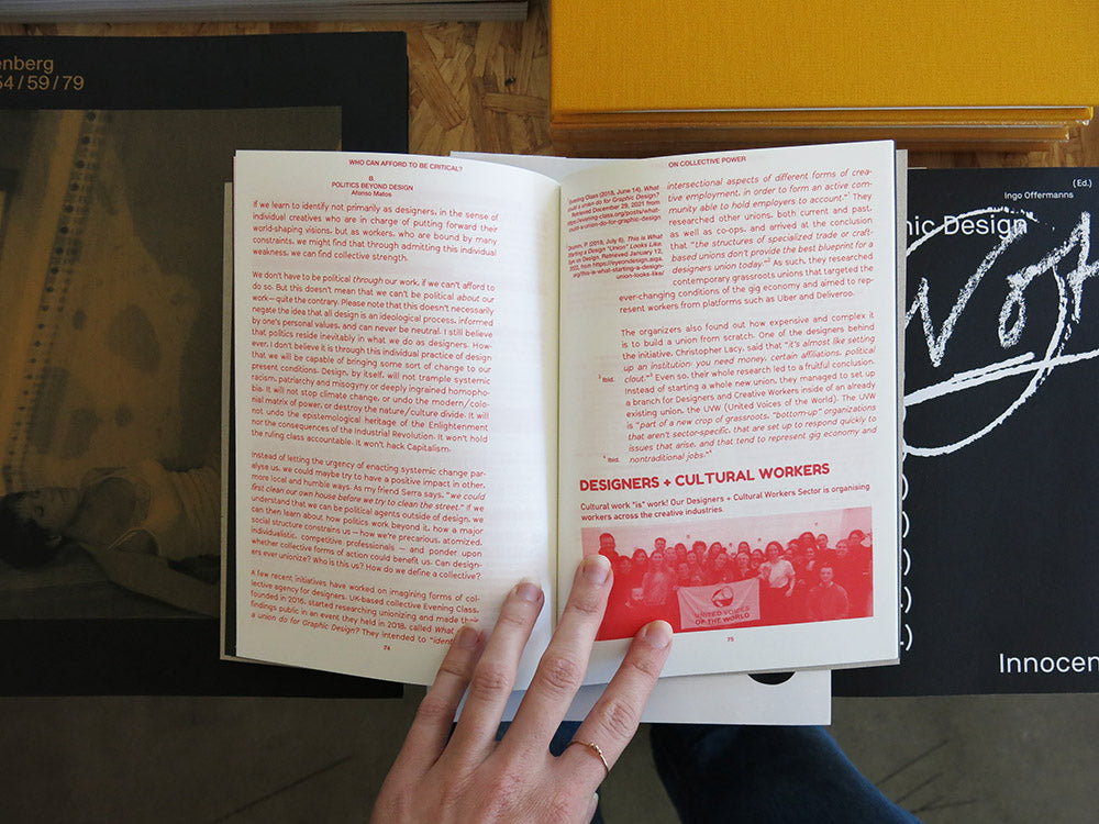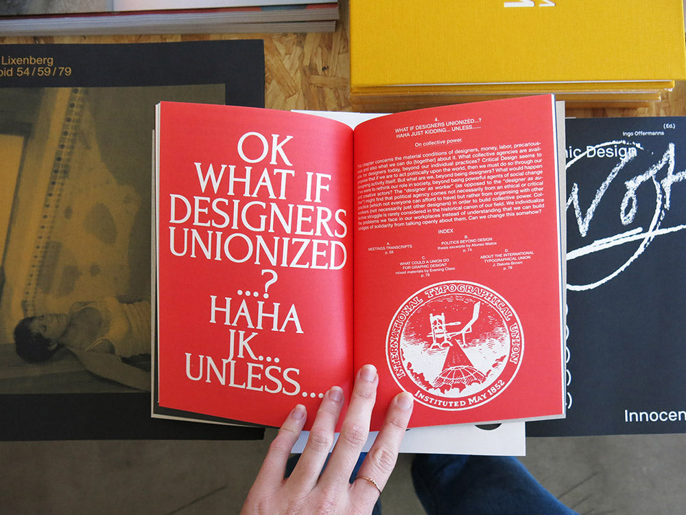 Instead of focusing on the dream of ethical work under capitalism, could we, instead, focus first on designers’ own working conditions, targeting them as one immediate site for collective action? And can we engage politically with the world not necessarily as designers, but as workers, as activists, as citizens?