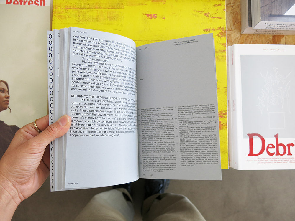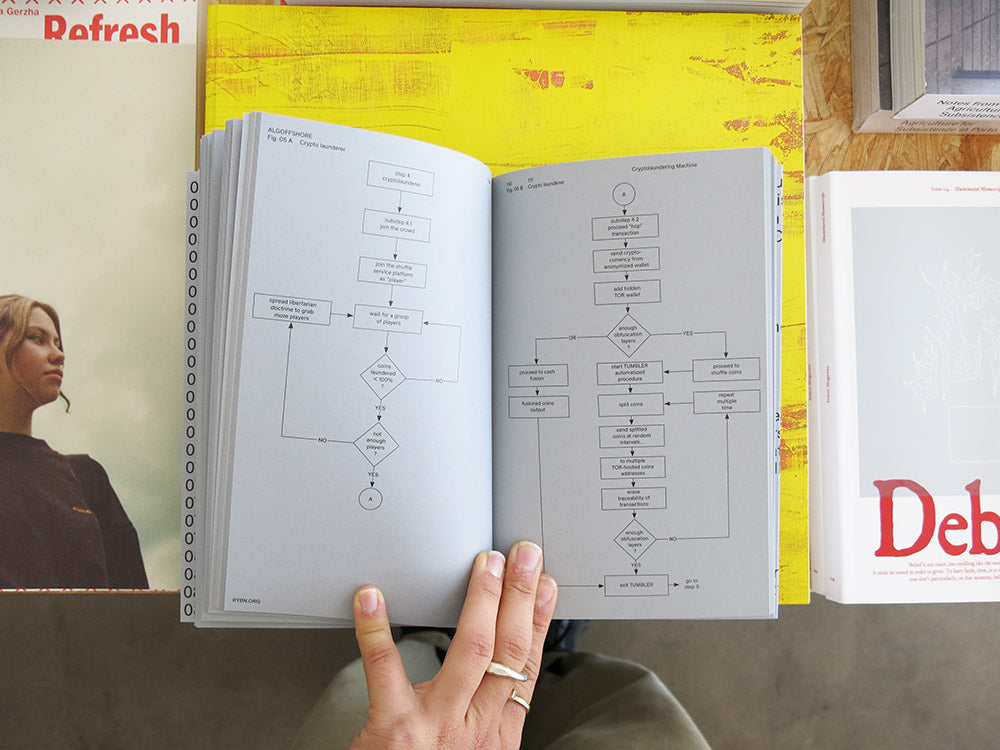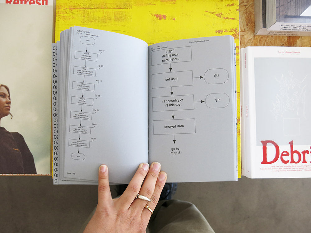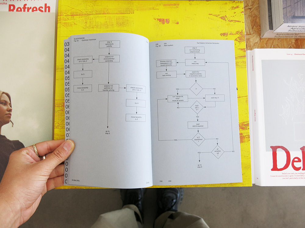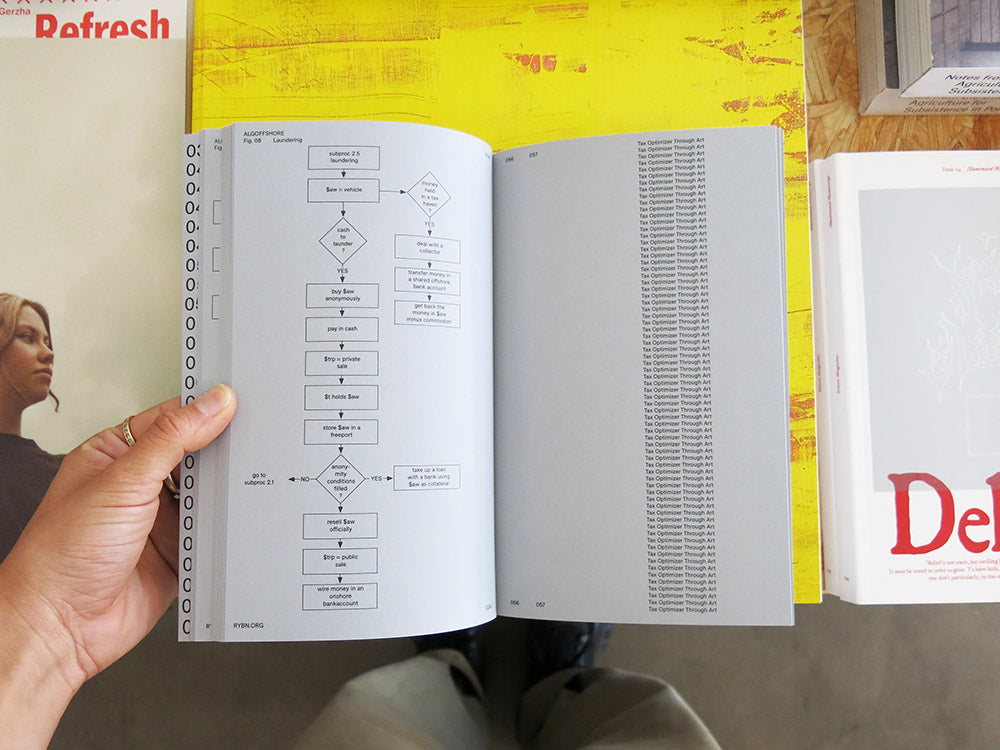 The ALGOFFSHORE series of flowcharts (RYBN.ORG, 2017- 2021) presents five ready-to-use strategies for evading taxes or social and environmental obligations. En passant, these flowcharts document how contemporary financial engineering allows multinationals and enterprises to optimise profits, render transactions opaque, maximise anonymity, and circumvent all kinds of regulations hindering the smooth circulation – and ultimately the accumulation – of capital. As such, the present publication can be seen as a tactical manual for the art of evasion. With an article by Pekko Koskinen and interviews of Citizens Against Bank Exploitation), Le Freeport, Melle Smets, Lora Verheecke.