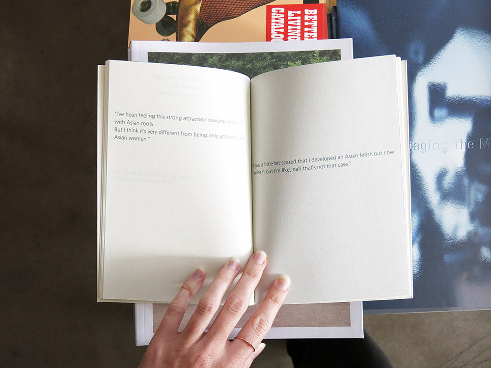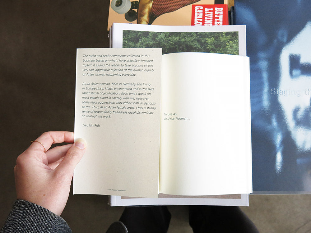 The racist and sexist comments collected in this book are based on what I have actually heard myself. It allows the reader to take account of this very sad, aggressive rejection of the human dignity of Asian woman happening every day.’