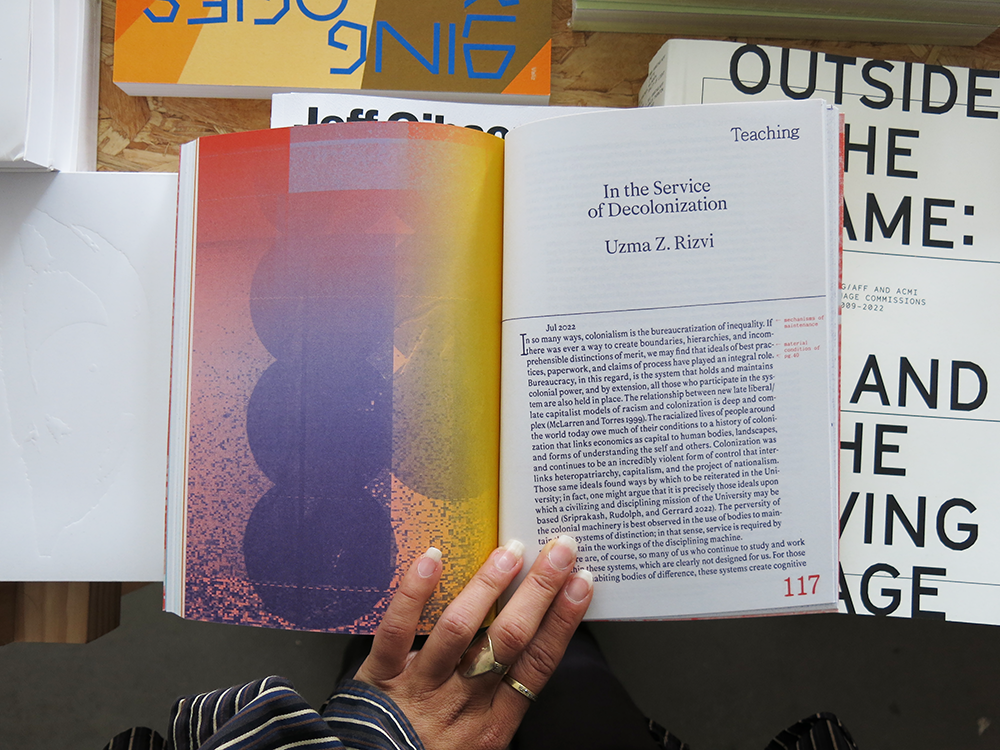 Engaging in pedagogical expressions of rage, generosity, forgiveness, slowness, and chaos; contributions of lecture, essay and interview reflect on the weight of being, the possibilities and sometimes impossibilities towards un-doing and un-maintaining the enduring legacies of colonial powers.