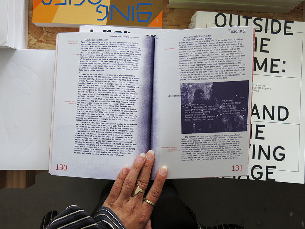This book names and wrestles with design and institutional design education’s pseudo-neutral relationship with colonial capitalist world orders and what it means to teach and design today. It slowly weaves together ideas on designing as a mechanism of maintenance and teaching against bureaucratic inertia.