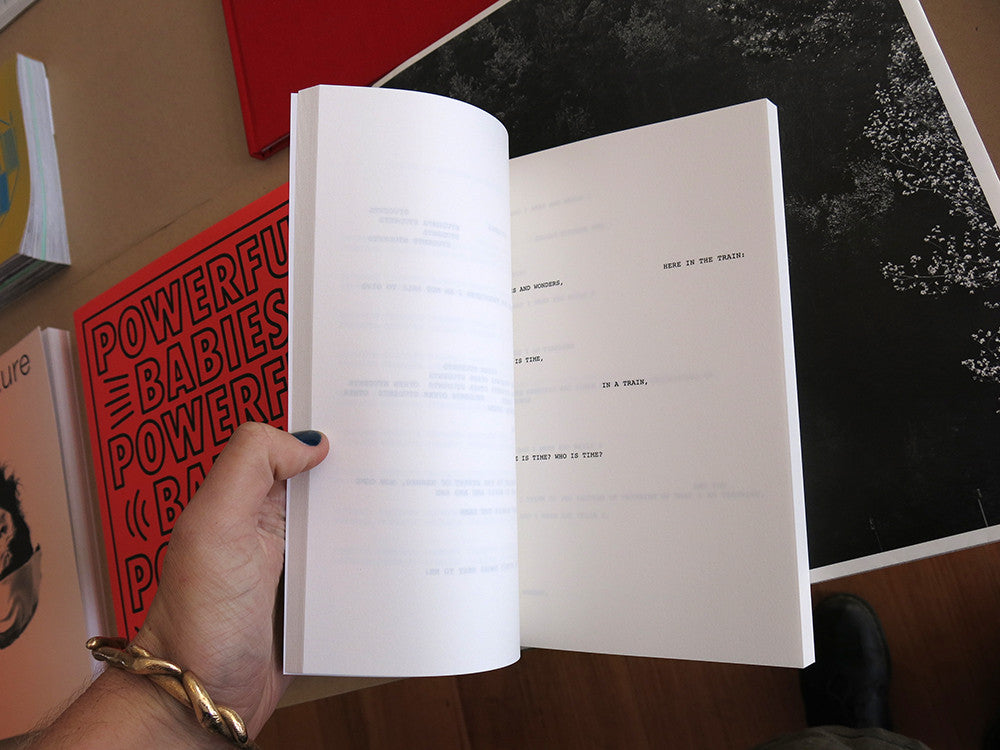 Animals questions through a poetic approach the modernist apprehension of time and locomotion, in the realm of today. Somehow, Felicia Atkinson is asking herself what is the feeling of passing the beginning of a century on the passenger’s seat whereas it is experienced through reading, writing, while she is traveling by train or by car, scrolling informations on a computer, and its consequences on one own’s perception of a particular landscape. Or, even how to behave in a mundane context. Can a lake shape a relationship? Can a train be an office? How to deal with neighbours? When to act? When to stop? Can the words mean the same thing all the time? What is duration? How to feel specificity inside a crowd?