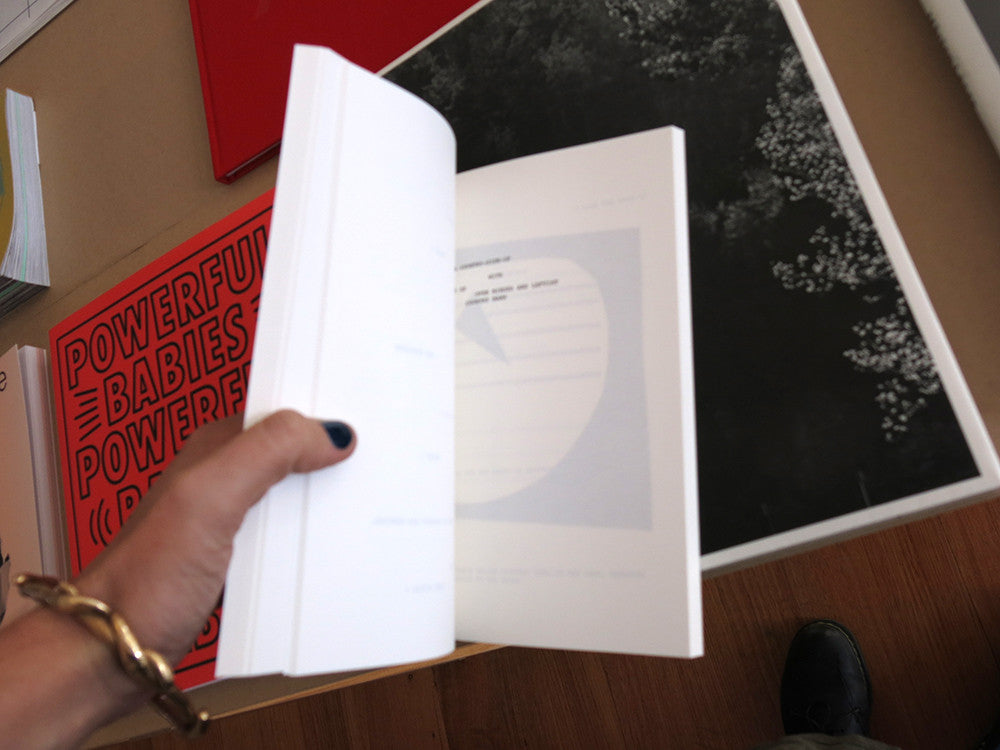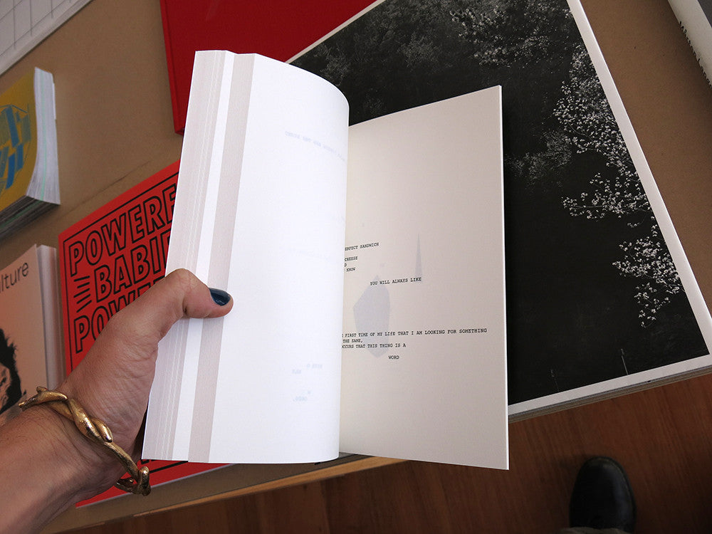 Through simple words in English (Atkinson is a French native speaker) in the rhythm of an echoing monologue punctuated by black and white paper cut-outs , the author finds her way through the book with an ambiguous mixture of “nonchalance” and attention. Animals is a train ride, an experience of time brushed by the fugitive landscapes and the indistinct noises all around. Published by Shelter Press (St Martin).