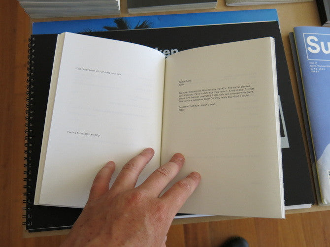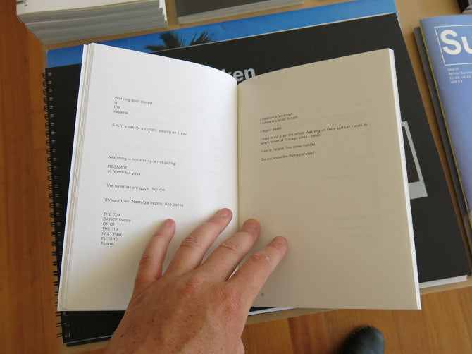 Felicia Atkinson's Twenties Are Gone is sentimental journey written in the mist of the Finnish August of 2012. It guides us as a reconstructed and DIY carte du Tendre. Re-imagined through the primordial forests – from the Californian redwoods to northern Finland. A statement led by the experience of making sculptures and having drinks under a porch, drawing and making sandwiches, being in love and singing songs, watching TV shows and staring at sunsets. At once in the now and metaphysical. The twenties are gone and thirties are opening their wild gates. This is the first poetry book wrote by the visual and sound artist and it is published by Shelter Press (St Martin).