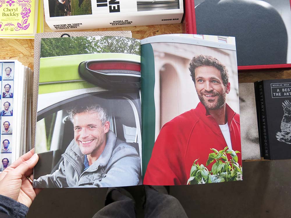 The men's magazine featuring various photos of men on cars.