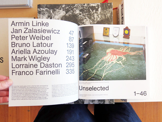 For more than twenty years, Armin Linke has been photographing the effects of globalisation, the wholesale transformation of infrastructures, and the networking of the post-industrial society via digital information and communication technologies. His photographs show that the modern world is a massive profusion of data, where the material infrastructures, computer rooms, data highways, and server rooms, are largely invisible. For The Appearance of That Which Cannot Be Seen, Linke invited scientists and theoreticians to review and examine his picture archive. Ariella Azoulay, Bruno Latour, Peter Weibel, Mark Wigley, and Jan Zalasiewiczresponded with a variety of different readings. Thanks to Spector Books (Leipzig).