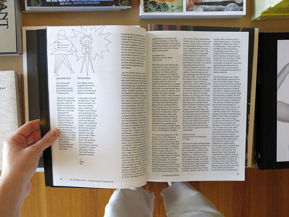 The magazine Bauhaus 11 appears at the end of the major Bauhaus anniversary year. A review as preview. What was, what remains, and, most importantly, what is to come at the Bauhaus Dessau after “100 Years of Bauhaus”? The magazine looks back at an eventful jubilee and captures special moments, atmospheres, encounters, and insights. Bauhaus 11 presents the radical ideas that the Bauhaus has inspired in 100 young architecture students from all over the world and asks what a modern-day Bauhaus school might look like—it dances on the stage, browses in the building research archive, visits the new Bauhaus Museum Dessau, and experiences the Dessau Bauhaus buildings in a completely new way. In the process, it meets Bauhaus experts and newcomers, fans and sceptics, tourists and performance artists, historians and shapers of the future.
