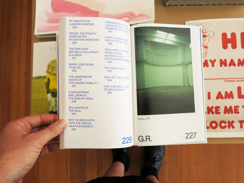 American author Ben Lerner and German filmmaker and writer Alexander Kluge come from two different generations but share a single passion: an interest in the long-term effects of things. A line from Lerner’s poem “The sky stops painting and turns to criticism”that Kluge was struck by some years ago became the starting point for their first joint book project. Kluge responded to this celestial critique with a story about the technically controlled power of a squadron of bombers bossing the skies over Aleppo, which Lerner answered with a sonnet. Step by step this gave rise to poems, stories, and conversations in which the heavens show their bewitching and threatening qualities. This literary dialogue is published in The Snows of Venice. A series of twenty-one photographs that Gerhard Richter took in Venice in the 1970s augments the interplay of texts and the principle of interconnecting poetic horizons. Thanks to Spector Books (Leipzig).