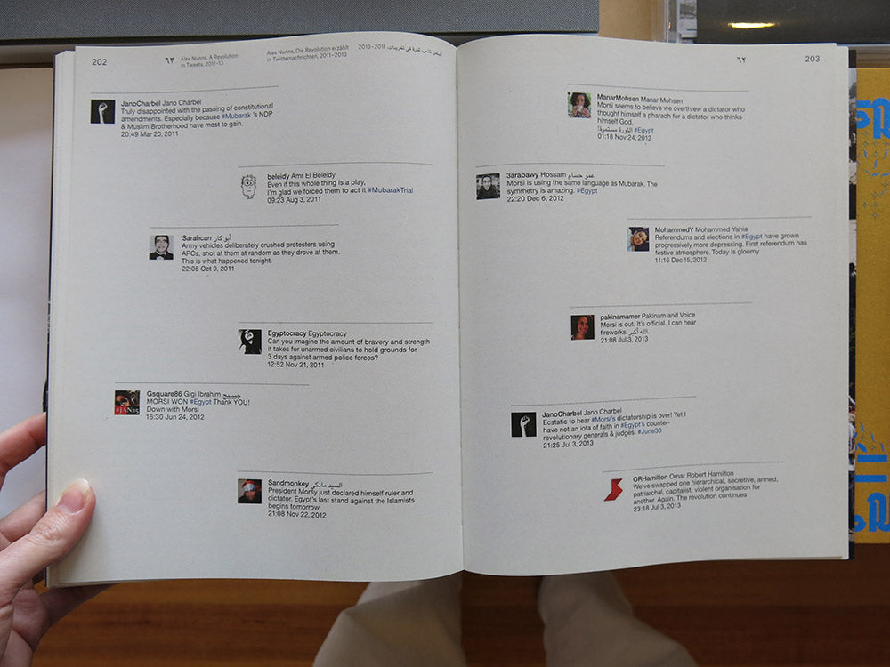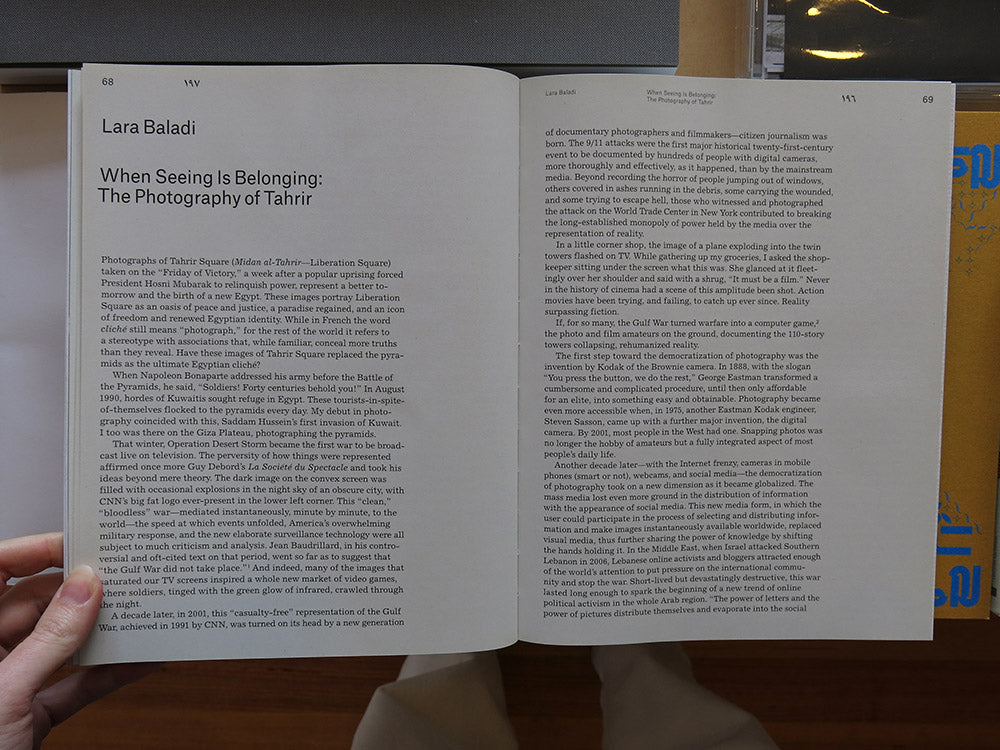 Cairo. Open City examines the roles that images are playing in the ongoing Egyptian revolution, from the outbreak of the Arab Spring through to the present. The book includes a variety of approaches to the time-based media of photography and video, from the works of photo journalists and recordings by activists and “citizen journalists”, to documents collected by different artists. The different chapters generate a dialogue between the images – cover images from newspapers stand alongside photo galleries from blogs, iconic pictures alongside unknown images of people on the streets, images of martyrs alongside long-term documentary projects. This volume was released the occasion of the exhibition in the Museum for Photography Braunschweig and collects essays from young Cairo-based authors.