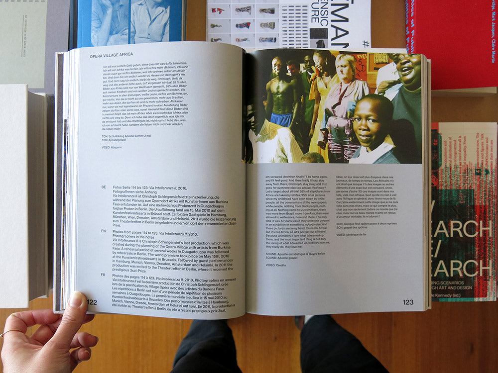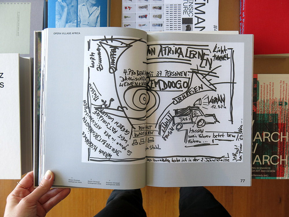 In February 2010, Christoph Schlingensief laid the foundation stone for Operndorf Afrika in Burkina Faso. An extensive illustrated book with over three hundred images is being published in 2020, the tenth anniversary of the 'opera village', offering an in-depth insight into the history of the project, based on the rich fund of archive material from the last ten years, which has been reviewed and reorganised from an artistic perspective. Starting with the first sketches showing Schlingensief’s initial thought processes, the book also includes photos of different phases of construction and life in the village today, providing information about the project’s background and the local cultural programme that has been in existence for many years. In addition to a previously unpublished text by Christoph Schlingensief on the vision of the opera village, there are contributions by Aino Laberenz, Francis Kéré, and Elfriede Jelinek, who seek to bridge the gap between the utopian idea of Operndorf and its actual implementation.