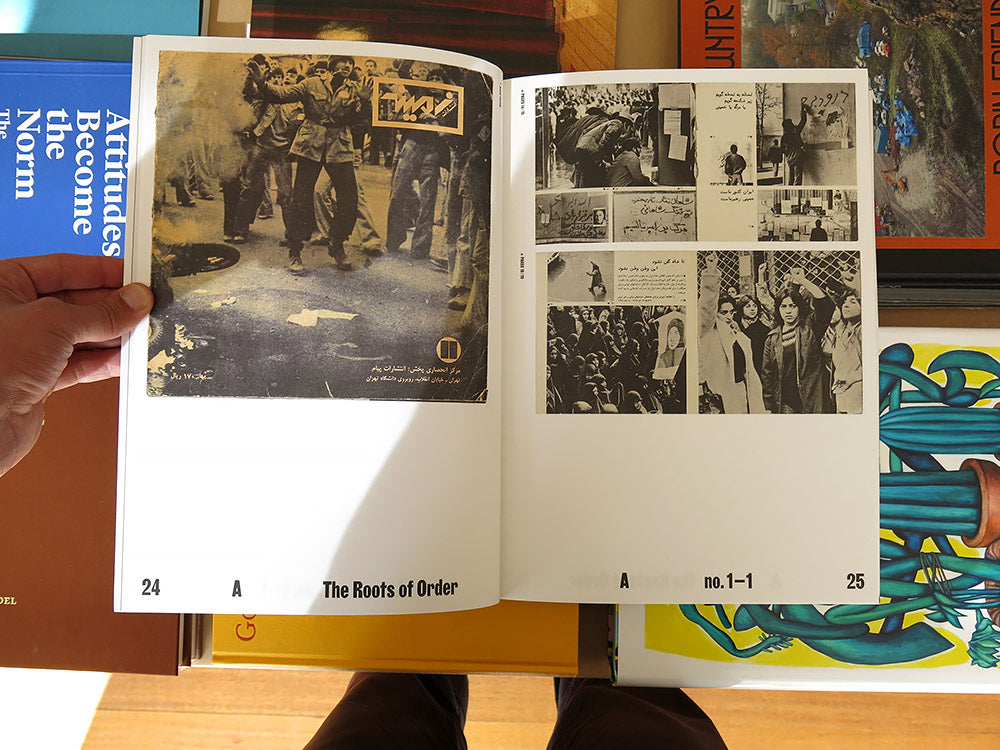 Enghelab Street, Revolution Street, is located in the centre of Tehran – a main artery in the city’s cultural life with a host of bookshops. The publication presents a variety of photographic and propaganda books collected by Iranian artist Hannah Darabi. Drawing on works published between 1979 and 1983 – years corresponding to the short period when freedom of speech prevailed at the end of the Shah’s regime and the beginning of the Islamic government – she takes us to the heart of an intense artistic and cultural period in Iranian history. Darabi has developed a visual essay accompanied by a critical apparatus written by Chowra Makaremi. The publication with its extensive landscape of books gives us the opportunity to look at rare printed matter for the first time. It forms part of the series Applied Publishing Studies and is produced in conjunction with the exhibition Hannah Darabi, Enghelab Street, A Revolution through Books: Iran 1979–1983, LE BAL, Paris, from 9 January to 11 February 2019.
