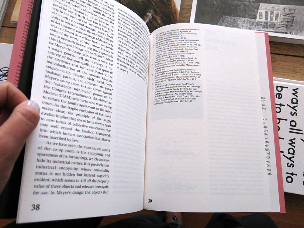 In his photographs of the corner of a room that is characterised at least as much by the absence of people, objects, and spatial features as by the distinctiveness of its design, Hannes Meyer gave expression to a radical, anti-bourgeois style of interior. Architecture and design were not meant to fulfil historically determined needs but to overcome these very constraints. Meyer’s Co-op Interieur was not a recommendation for a mode of interior design but rather a manifesto proclaiming an alternative principle of housing and living and, by extension, a new world. Thanks to Spector Books (Leipzig).