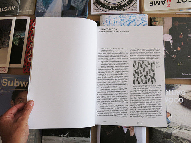 The Space for Visual Research was established at the Bauhaus-University Weimar in 2013 as a workshop and laboratory for experimental research into new graphic, abstract and visual worlds. The Space’s mission is to support the exploratory urge for new aesthetics, in particular by empowering design students to create their own individual imagery. The resulting Space for Visual Research publication is a lab book, a log of visual experiments conducted using physics, chemistry, optics and reproduction technology as starting points for image production. Technical explanations open up possibilities for customised reproductions of each visual experiment presented here, while commissioned interviews and essays as well as a hand-picked bibliography render Space for Visual Research a useful reference tool for visual research generally today. Thanks to Spector Books (Leipzig).