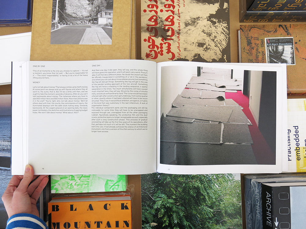 BER 2017–2020: An airport with no planes, a terminal with no passengers. Berlin-Brandenburg Airport (code: BER) was for a long time a major project that never came to an end: half-finished, devoid of function, in a perpetual state of waiting. Over a period of three years Matthias Hoch studied this stasis, looking at the site through the lens of an analogue large-format camera, rather like an archaeologist: area by area, space by space – from the railway station to the boarding gate, from landside to airside – viewing it as a potential user might see it. The result is a series of images showing a mysterious construct – photographs of a place where the not-yet merely seems to have given way to a not-anymore: a picture puzzle of the time.