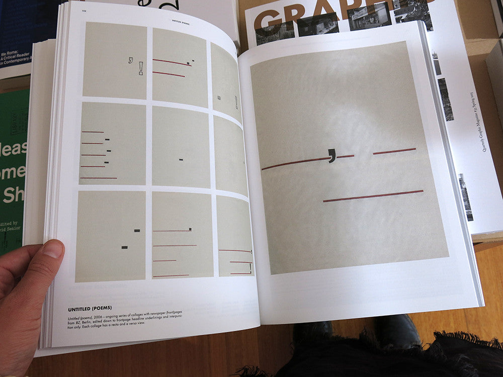 A cross-reference book of information on aesthetic boundaries, consisting of a bibliography into which inserted text, critical essays, art works, and documents, are arranged chronologically and focused on a selection of so-called 'greatest hits' and conceptual poetics. It contains mentions of such vaguely designated areas as appropriation, post naive, unboring boring, détournement, object perdu, and erasure poetry — or writing through — as they currently occur (with occasional political overtones) in the work of Michalis Pichler. This book is the first monograph focused on the practice of artist/author Michalis Pichler. Featuring eleven critical essays, an extensively illustrated catalogue, a conversation with John Stezaker, and selected writings by the artist, the book delivers a solid introduction into conceptual poetics. Thanks to Spector Books (Leipzig) & Printed Matter (New York).