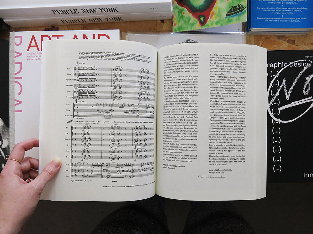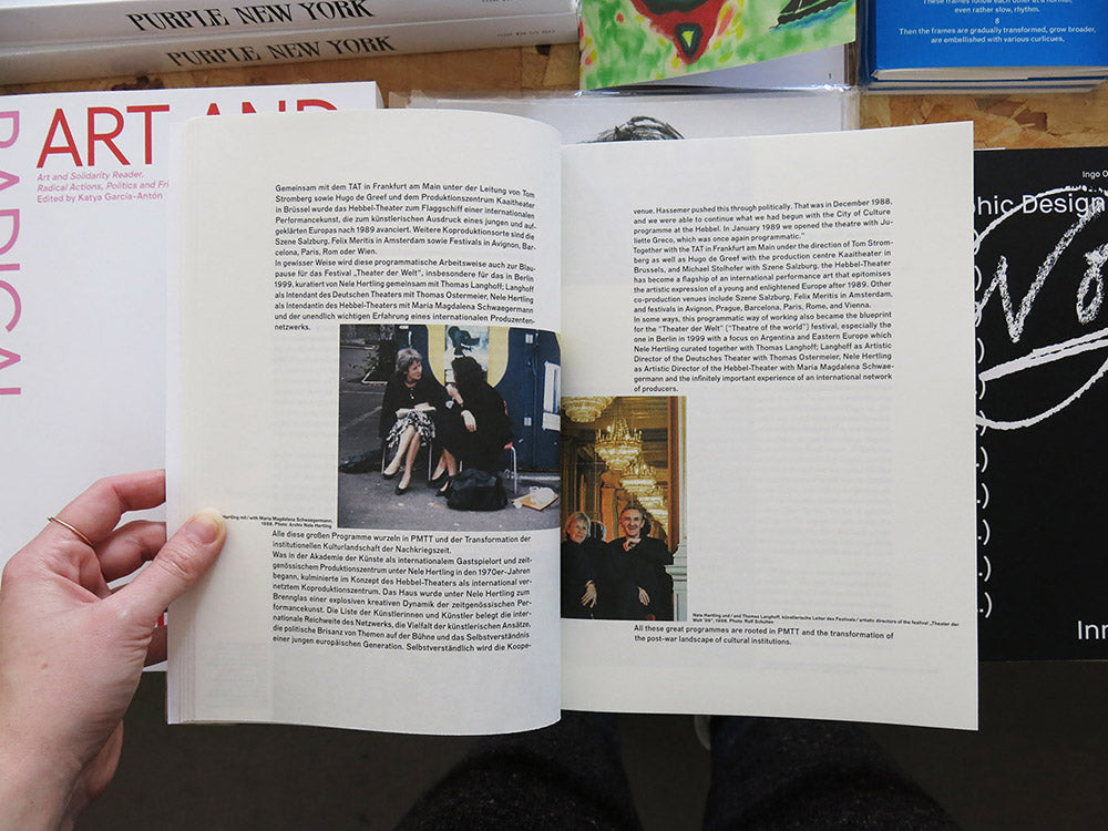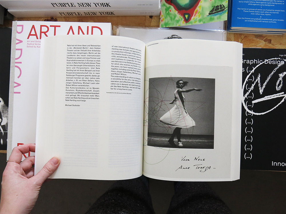 A tribute to Nele Hertling with artists’ dedications, essays, and extensive interviews about her childhood under National Socialism, her socialisation between East and West Germany and at the Akademie der Künste. The volume documents a unique story of successful international programming, the refounding of the Hebbel-Theater, and the innovative festivals she established while building cultural-political networks: an untiring commitment to the arts over sixty years.