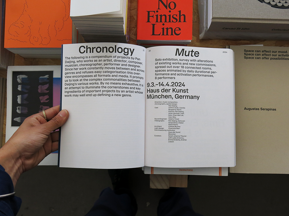 Pan Daijing devises performances and exhibitions as Gesamtkunstwerke, total works of art in which architectural intervention, light, sound, and movement interact to tell stories that go beyond language. Her haunting compositions for voice and electronic instruments combine opera and noise music. Mute – in which the artist and composer examines silence and liveness – is Pan’s biggest solo exhibition to date. This monograph is published in conjunction with the exhibition and in collaboration with Tai Kwun Contemporary is the first comprehensive presentation of Pan’s work in the dynamic zone straddling music and visual art.