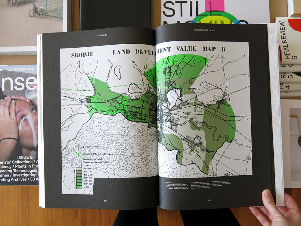 Skopje Walkie Talkie: Roam the city and talk about it. This book, edited by Susanne Hefti and Damjan Kokalevski, deals with current social changes in the Macedonian capital and shows how public space is instrumentalised in the course of populist and nationalist power structures. With the aim of creating a new, glorious identity for the city and for the estimated cost of 680 million euros, numerous new buildings were built there within a short space of time. Architectural knowledge from the 1960s and 1970s, the reconstruction of Skopje after a serious earthquake, however, was overwritten or destroyed, so that the younger new buildings are already ruinous today.