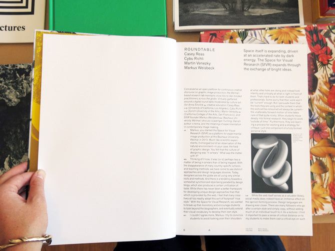 The Space for Visual Research was established at the Bauhaus University in Weimar in 2013 as a workshop and laboratory for experimental research into new graphic, abstract, and visual worlds. The Space's mission is to support the exploratory urge for new aesthetics, in particular by empowering design students to create their own individual imagery. The resulting new Space for Visual Research 2 is the updated lab book — a log of visual vintages, using physics, chemistry, optics, and reproduction technology as the starting points for image production. Technical explanations open up possibilities for customised reproductions of each visual experiment presented here, while commissioned interviews and essays as well as a select bibliography render Space for Visual Research. Published by Spector Books (Leipzig).