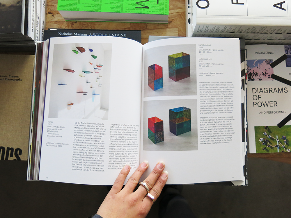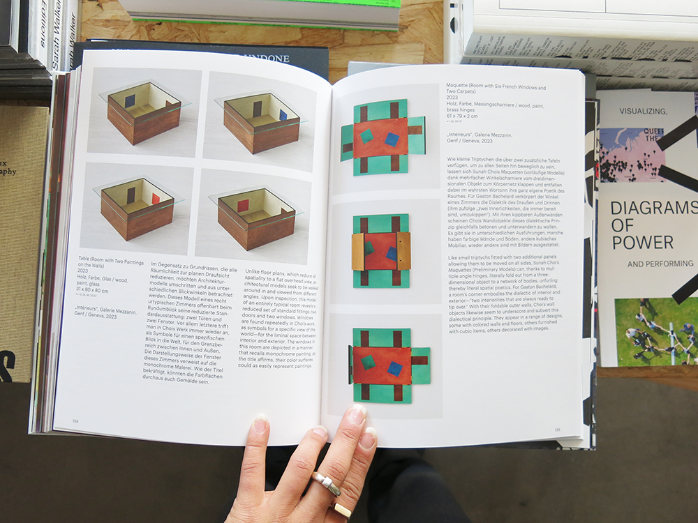 Sunah Choi´s new monograph brings together works the artist has made over the last five years, revealing a process of development that is defined both by continuity and by productive contingency: while Choi´s interest in spatial (re)organisation is an abiding feature of her oeuvre, each work plays with specific antitheses. The artist is currently formulating the latter with a particular focus on materials such as glass, wood, and metal, used to develop scenarios and objects that oscillate between sculpture, architecture, and interiors.