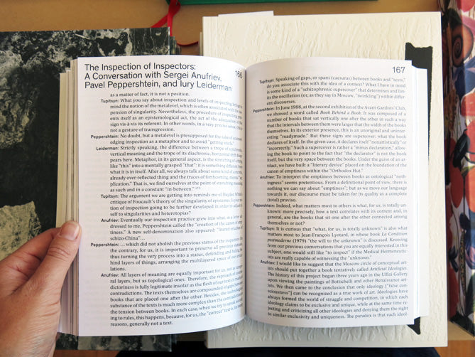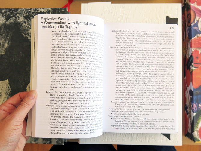In the Soviet era, Victor Tupitsyn had already begun making recordings in Moscow kitchens and studios of conversations with Russian conceptual artists. They were intended to be read in exhibitions. Today, Russian conceptualism is considered one of the most influential movements of the late twentieth century. Like many other Russian intellectuals and artists, Tupitsyn emigrated to New York in the 1970s, where he continued the conversations he had begun. In Vis-à-vision he emerges as an astute interview partner who knows how to build connections between the separate worlds. Featuring conversations with Ilya Kabakov, Boris Mikhailov, Komar & Melamid, Erik Bulatov, and the Collective Actions and Inspection Medical Hermeneutics, as well as many others. Published by Spector Books (Leipzig).