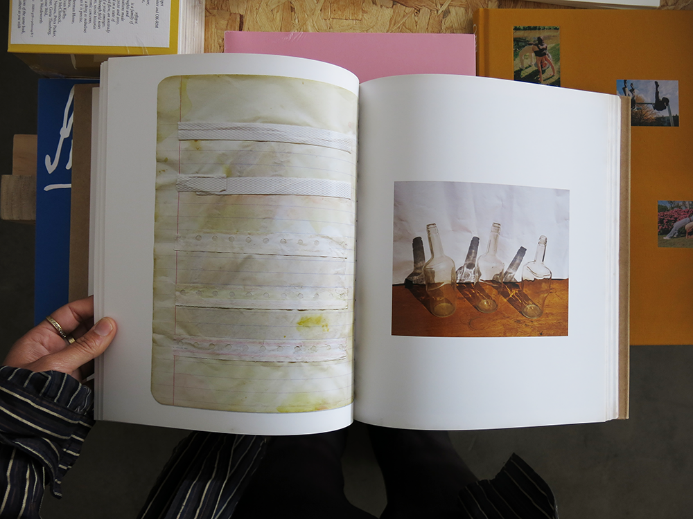 Gong Co. invites readers to engage in a visceral and visual exploration. Through Patterson’s eclectic mix of on-site and studio photographs, monotypes, trompe l’oeil collages, and cryptic handwritten notes, the book becomes a dynamic and multi-layered experience. Marcel Duchamp’s readymades or Dieter Roth’s Flacher Abfall (Flat Waste) come to mind, where everyday objects are transformed into art through context and presentation. The book offers endless opportunities for interpretation.