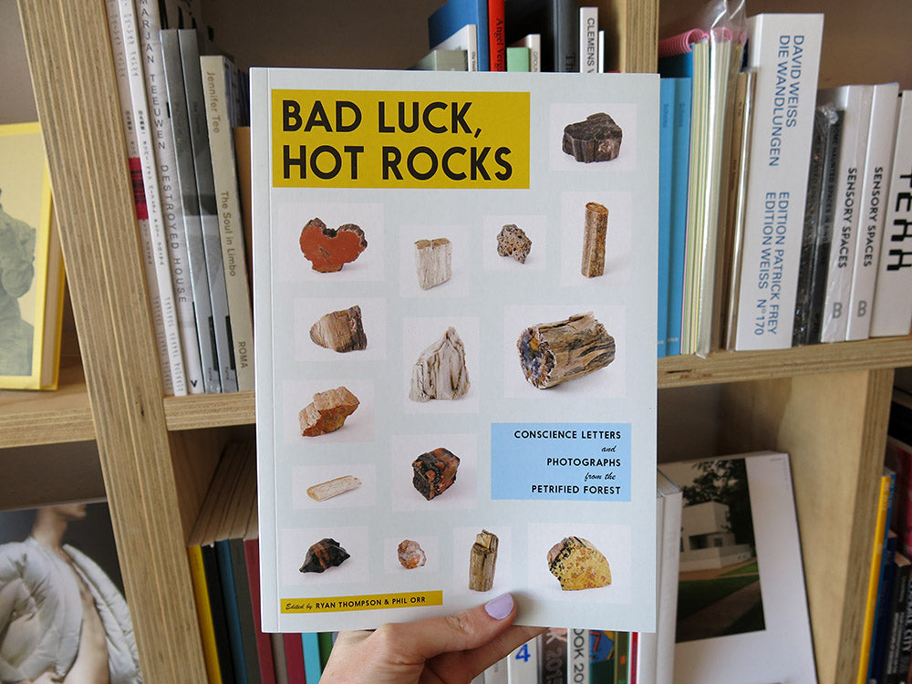 The Petrified Forest National Park in Northeast Arizona protects one of the largest deposits of petrified wood in the world. Despite stern warnings, visitors remove several tons of petrified wood from the park each year, often returning these rocks by mail (sometimes years later), accompanied by a 'conscience letter'. These letters often include stories of misfortune attributed directly to their theft: car troubles, cats with cancer, deaths of family members, etc. Some writers hope that by returning these stolen rocks, good fortune will return to their lives, while others simply apologise or ask forgiveness. 'They are beautiful,' reads one letter, 'but I can’t enjoy them. They weigh like a ton of bricks on my conscience. Sorry…' Edited by Ryan Thompson and Phil Orr, Bad Luck, Hot Rocks documents this ongoing phenomenon, combining a series of original photographs of these otherworldly 'bad luck rocks' with dozens of facsimiles of intimate, oddly entertaining letters from the Park’s archives.