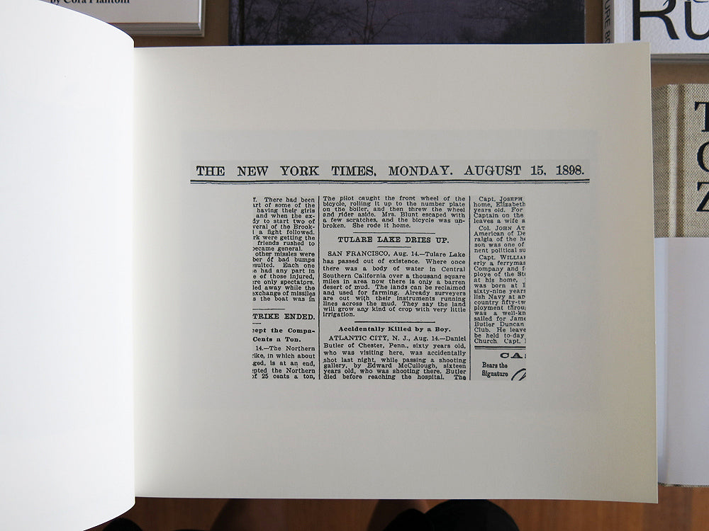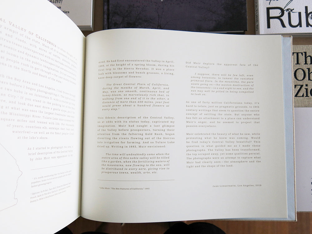 From 2008 to 2012, often in the dead of summer, American painter Jake Longstreth photographed the dusty, utilitarian Central Valley of California, a severe inland topography formerly occupied by the massive Tulare Lake. With a tonal restraint echoing the style of his own flatly realistic paintings, Longstreth’s photographs capture the hazy, blinding sunlight and muted palette of this region, a topography that has been transformed from a lush, wild terrain – celebrated by John Muir in 1868 as “one smooth, continuous bed of honey-bloom” – into the monotonously fertile industrial farmland it is today. “Millions of people pass over the dry lake-bed in their cars every year, unaware of its previous existence,” Longstreth notes with ambivalent fascination. “A Taco Bell now stands roughly where the shores of Tulare Lake once were.”