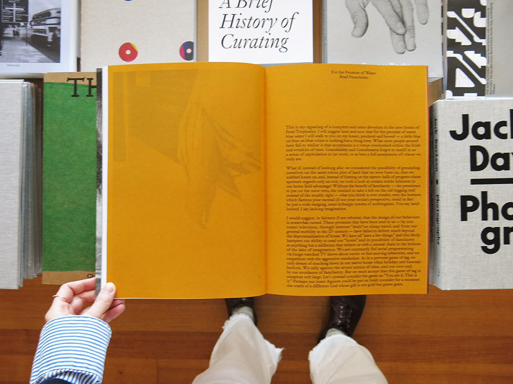 'I was in search of water and the effect its absence had on me,' writes Canadian sound artist and photographer Mark Templeton about his second photobook, Ocean Front Property. From this sense of absence and geographic isolation grew a new body of work with two components: A book of colour photographs, made entirely in the landlocked province of Alberta ('where the nearest ocean is a thousand kilometers away'), and an Audio Experience (a ‘soundtrack’ to the book, included as a digital download). Rooted in the same sense of longing – for the imagined comfort of warm blue water and an escape from one’s familiar surroundings – these complementary sensory worlds form a kind of mirage: a prism of banal surfaces, spaces, and sonic textures through which the fragments of an intangible fantasy can be glimpsed, a circular psychic journey from the desolate to the sublime. The photobook also contains an 8-page supplement, compiling selections by eight artists whom Templeton invited to choose pairings of sound and image, suggesting possible feedback loops and alternative readings between the eight audio tracks and his photographs.