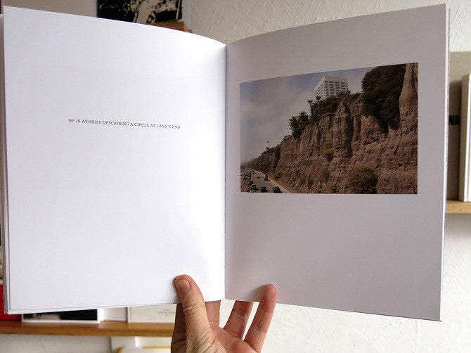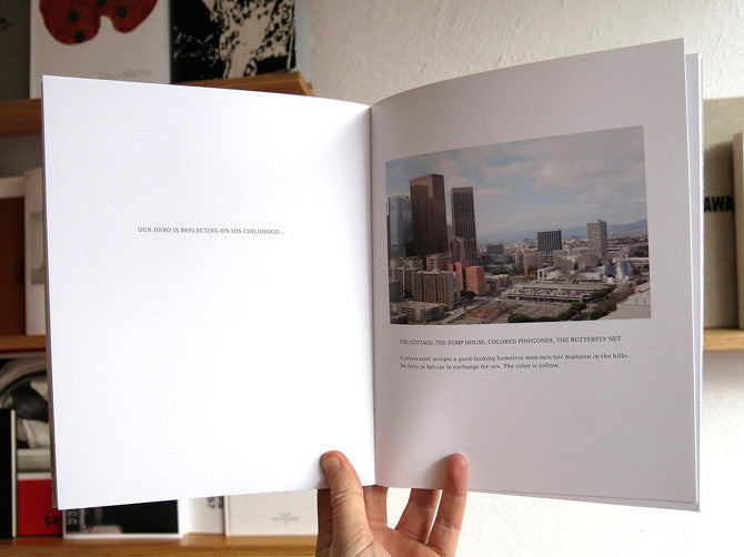 Seth Lower’s second photobook explores an observation he made about Los Angeles after moving to the city in 2010: the slippages between the real and mediated experience. Throughout the book, the comically unresolved drama of our unnamed “hero” emerges from several distinct elements: photographs of generic but oddly familiar movie set locations around the city; portraits of aspiring actors glaring into the sun; awkwardly poetic dialogue and screenplay notations lifted or modified from Hollywood blockbusters; and Lower’s own fabrications and personal anecdotes. Referencing works as diverse as Mulholland Drive and Crocodile Dundee in Los Angeles, The Sun Shone Glaringly evokes all the tropes of the LA myth to address an essential question: how do popular representations of Los Angeles affect our everyday experience of the city? Thanks to The Ice Plant (Los Angeles).