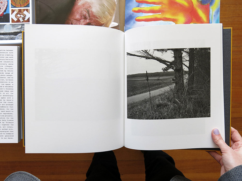 In Christmas Day, Bucks Pond Road, his second book with The Ice Plant, Brooklyn-based photographer Tim Carpenter (born 1968) revisits the Central Illinois topography of his first monograph, Local Objects, with a sequence of 56 black-and-white medium-format photographs, all made on a single winter morning. In Local Objects he meandered this semi-rural Midwestern landscape through changing seasons in an abstract sequence, but here Carpenter follows a straightforward path, literally taking the viewer on a two-hour walk from point A to point B. Nothing much happens along this brief narrative arc—there are fallow fields, standing water, dormant trees, the occasional tire track on worn pavement—yet Carpenter explores the stillness of this outdoor space with a palpable, almost erotic anticipation, revealing intimate subtleties as the journey unfolds. Made with an intensity of attention and a lightness of touch, the photographs in Christmas Day, Bucks Pond Road are less about the confines of this specific time and place than about a poetic strategy for narrowing the distance between human desire and the factual content of the everyday world.