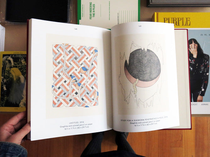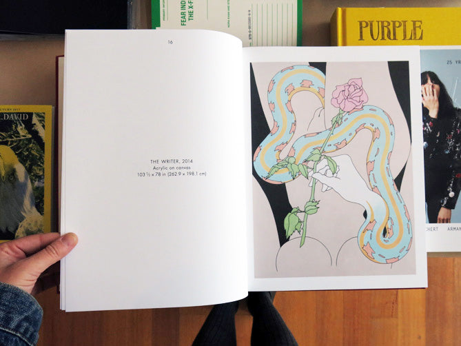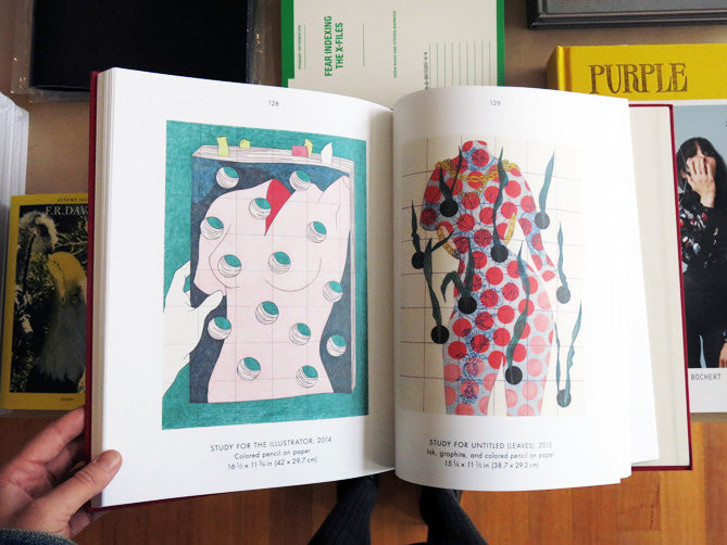 Paintings and their corresponding studies are reproduced in this survey of the artist’s work from 2011 to 2017. An interpretive poem, Blank Melody, by poet Charity Coleman serves as the book’s introduction. An essay by curator Jeff De Blois, titledNever Converge Into a Whole, examines art historical references and conceptual influences. Large reproductions and a pared down design reflect the artist’s illustrational style throughout this body of work. Published by Triangle Books (Brussels).