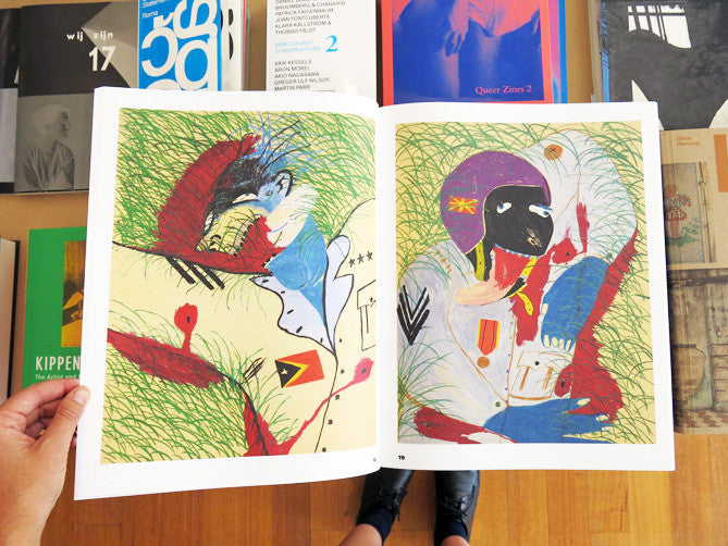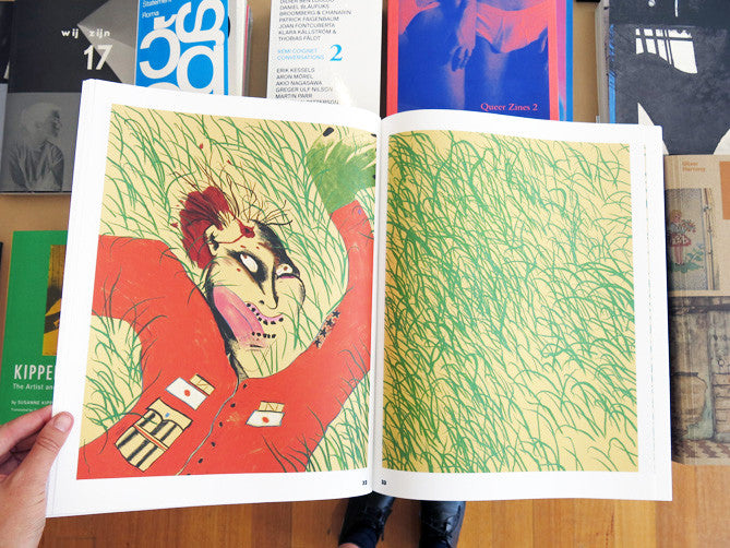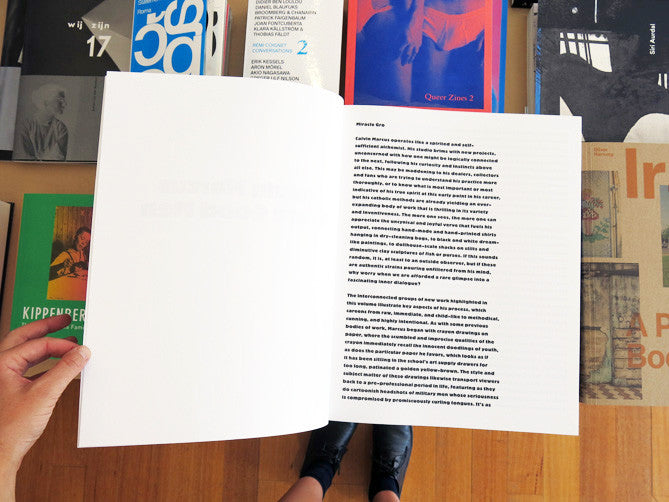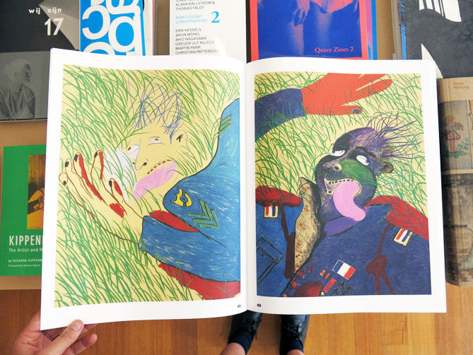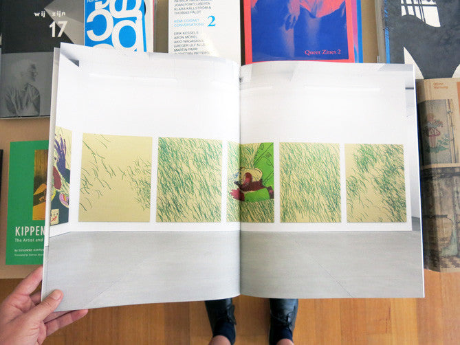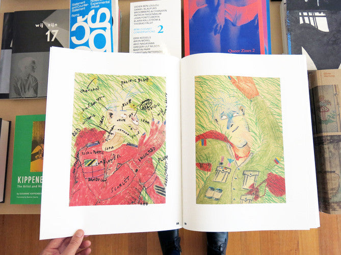 This catalogue documents Calvin Marcus exhibition at C L E A R I N G, New York in 2016 where Marcus transformed the gallery space into a panoramic battlefield. The grasses are made with different levels of density, some so sparse that they begin to feel like body hair. Dispersed among these depictions of nature are mannered portraits of war-ravaged soldiers. Each of them is an enlargement of a crayon on kraft-paper study illustrated in the book.The title, Were Good Men, reads like an epitaph where all of the soldiers, once vital and living and human, are served the same fate, in the same way, in the same field, sinking back into the grass together. Published by Triangle Books (Brussels).