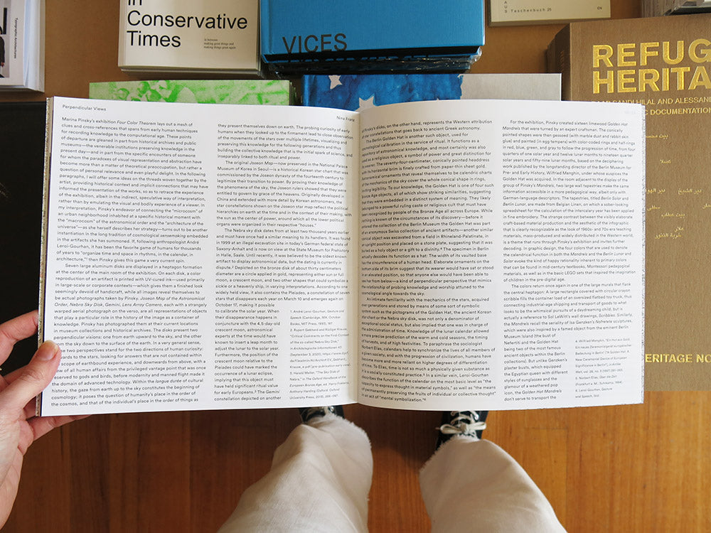 This catalogue documents the exhibition Four Color Theorem at C L E A R I N G, Brussels. It takes its title from a mathematical theorem proving the minimum number of colours needed to successfully create a map. The works on view set an eye towards the diagrammatic representation of space and time and how it affects, and layers over, daily lived experience. Marina Pinsky’s work has often turned its attention to the cities which have hosted her exhibitions, analysing their specific local histories and how they might fit into larger global interconnections. As Brussels is Pinsky’s adopted home (along with Berlin) Four Color Theorem looks at the city as a dwelling place as well as a transitory site, and takes habitation as an abstract, but nonetheless pragmatic, starting point.