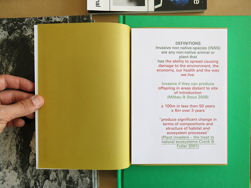 Artist Jim Ricks’ synchronic sequence of images or objects rests on opportunities to visually connect politics and/or aesthetics and/or history and/or philosophy from one to another. As a formal quest, this fundamental empirical and practice-based research within the ranges of our visual culture, conceptually triggers actual cultural migration and identification. In his Synchromaterialist series, Ricks visually reveals the inevitability of migration and of the inherent viral state of nature, and the nature of existence – what is inherently human – through the perception and reorganisation of the everyday. This book reaches and branches out to be all forms a book can be. It includes a number of collaborations, and footnotes as inserts and explorations in print – sticker, newspaper, leaflet, cook book, colouring, bookmark, and a book within the book with a text by art and design critic Max Bruinsma, describing the Synchromaterialist approach.