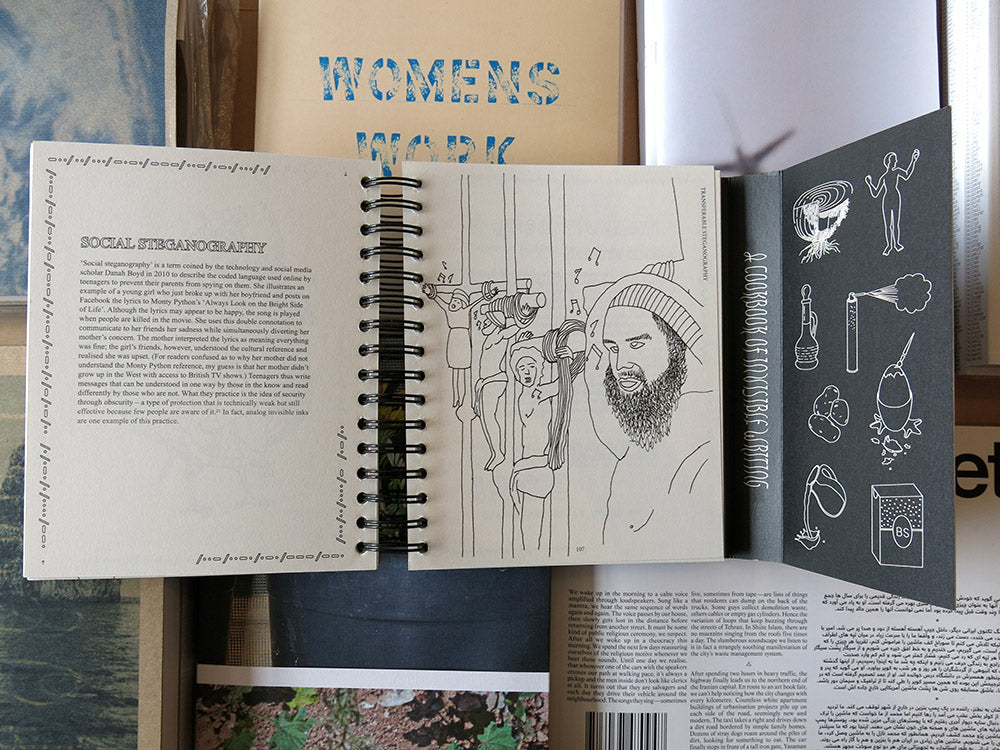 A Cookbook of Invisible Writing, written and designed by Amy Wu, is an introduction to analog steganography, a type of secret writing that is hidden in plain sight. It is an invisible ink colouring book, recipe book, puzzle book and artistic research book. This book also serves as a starter pack to run workshops for those who are interested in alternative forms of communication. A Cookbook of Invisible Writing provides a wide variety of invisible ink recipes and other communication techniques that may be used to subvert surveillance, bypass censorship and make visible the struggles of minorities and other marginalised cultures. Additionally, it aims to inspire communities to develop their own new poetic and playful forms of communication as a way of nurturing social bonds.